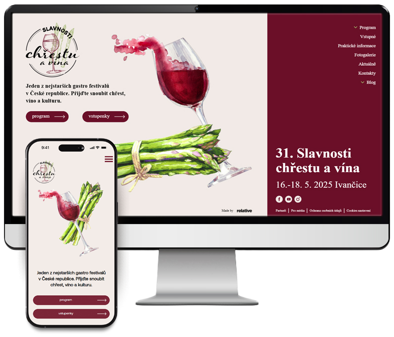 Vytvořili jsme novou vizuální identitu postavenou na autorských ilustracích, které propojují chřest, víno a kulturu. Design jsme promítli do všech materiálů – od plakátů a brožur, billboardů až po online bannery a sociální sítě. Web jsme navrhli přehledně, s důrazem na festivalovou energii i praktičnost pro návštěvníky. Díky konzistentnímu vizuálu se festival stal nejen viditelným, ale zapamatovatelným.