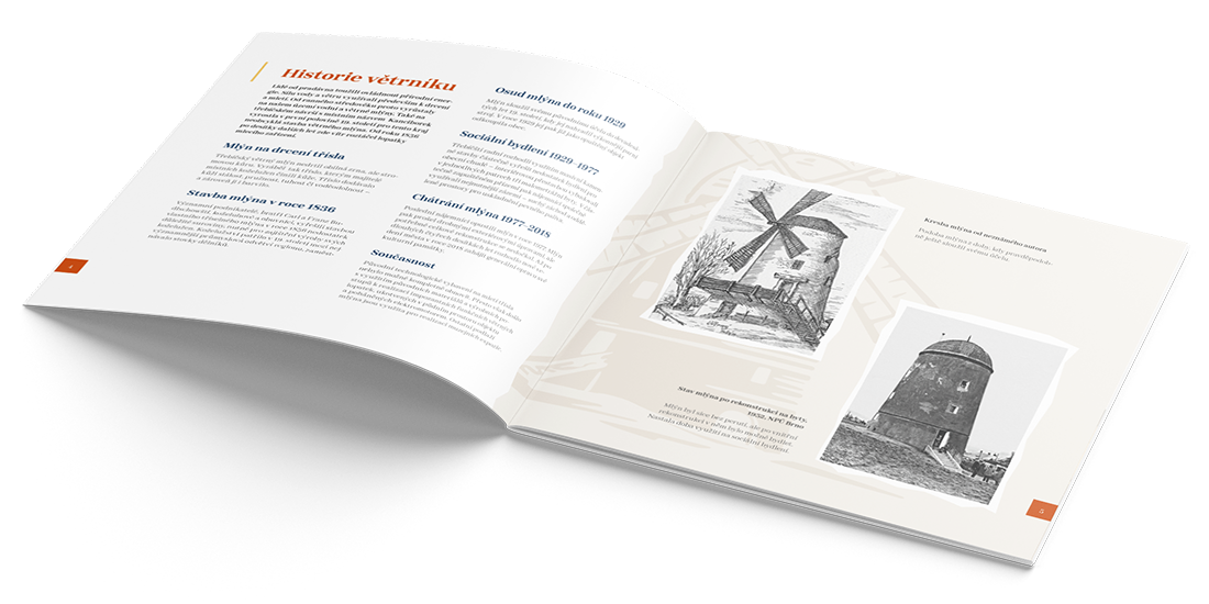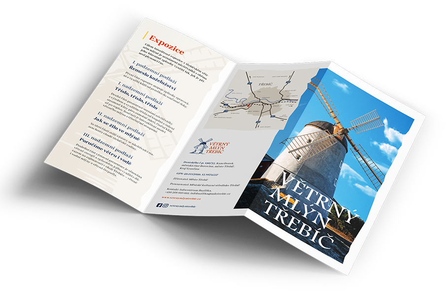 Na základě jednotného vizuálního stylu jsme navrhli a realizovali všechny klíčové tiskové výstupy – od plakátů pro veřejnost a letáků pro školy až po reprezentativní brožuru pro návštěvníky. Díky nim se z Větrného mlýna stal nejen kulturní symbol Třebíče, ale i další atraktivní zastávka pro turisty. V konkurenci s místními památkami UNESCO, tak nezůstane pozadu.